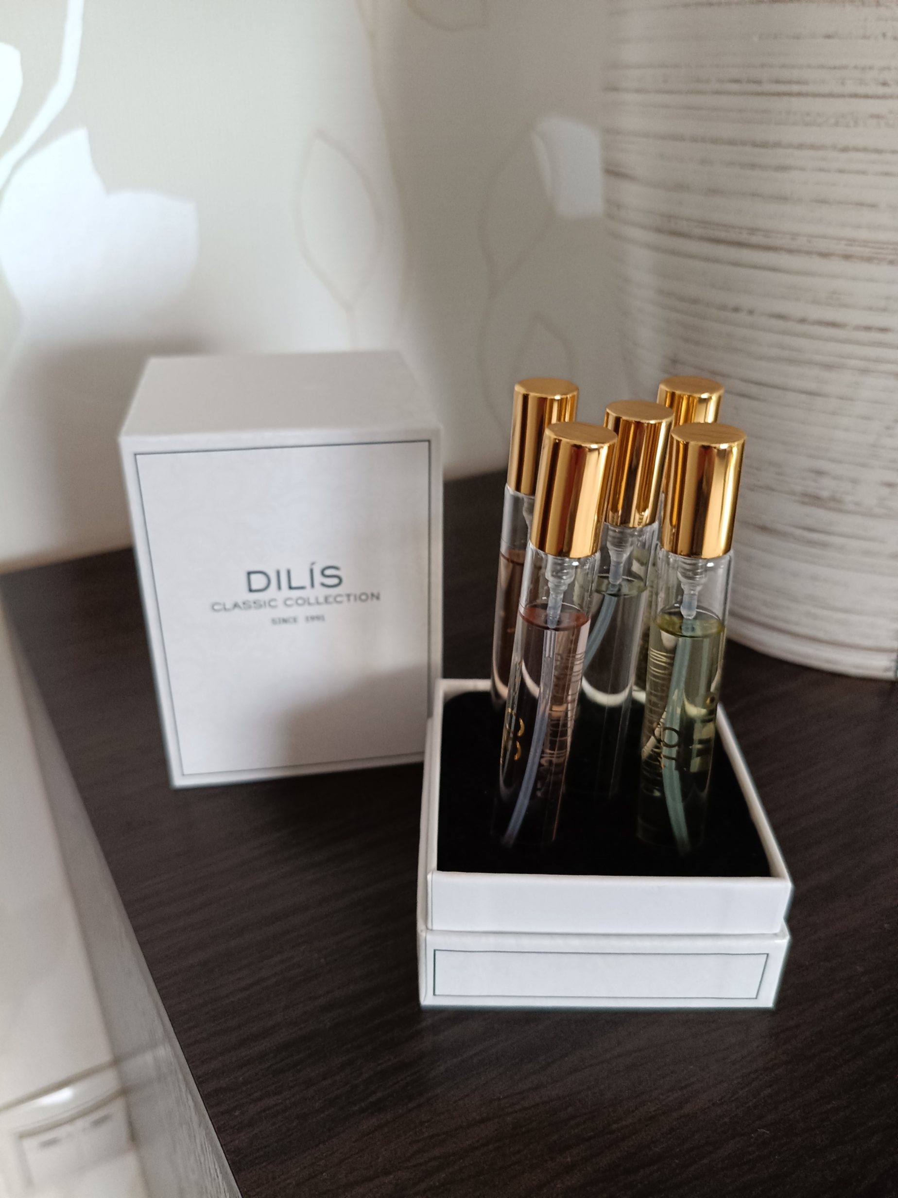 Наконец-то у DILIS вышел набор! Давно ждала, и этот день настал! Очень красивая упаковка, флаконы держатся крепко, можно не бояться, что выпадут, а сами флаконы с золотой крышечкой очень милые и удобно брать с собой в сумочку :) Видела обзор у блогера - она говорила, что это самые популярные ароматы у бренда. Все ароматы разные, все очень красивые и женственные, со своим характером я бы сказала)))) но мне очень понравились 16, 19 и 46 - в них есть эта цветочная пудровость и бархатистость, так что они теперь мои любимчики!