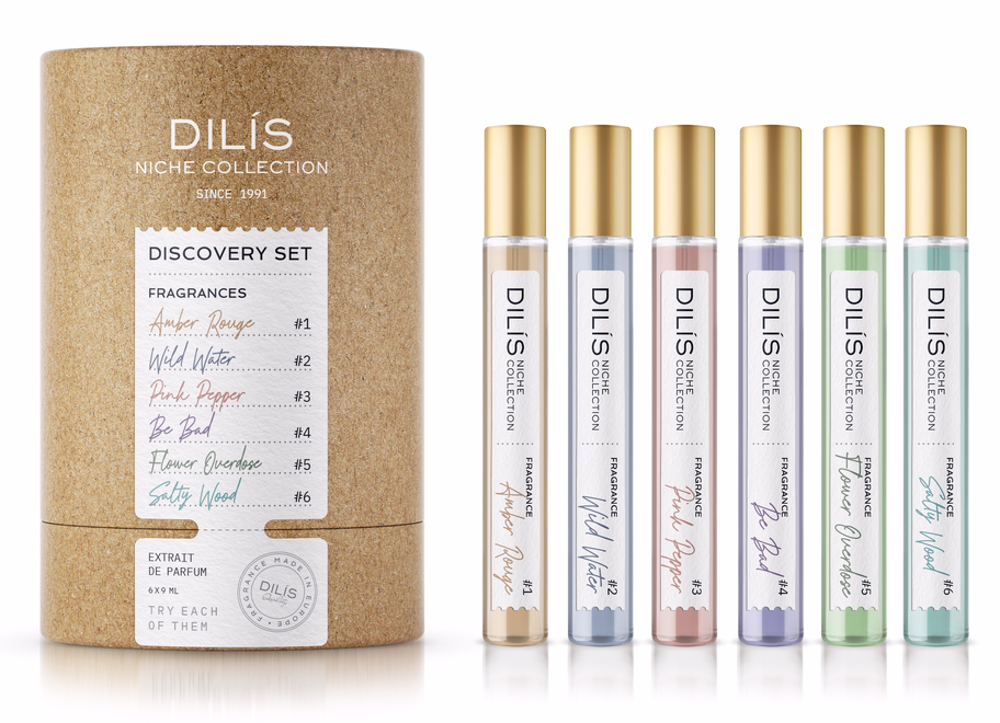 Парфюмерный набор "Dilis Niche Collection" – это 6 особенных нишевых ароматов для настоящих ценителей парфюмерного искусства. Каждый аромат – отражение своего парфюмера. Они провокационны, но стильны; зрелы, но современны; амбициозны, но нежны и романтичны; игривы, но строги. Эти композиции рассказывают свои истории и погружают нас в совершенно иные представления о парфюмерном мире.