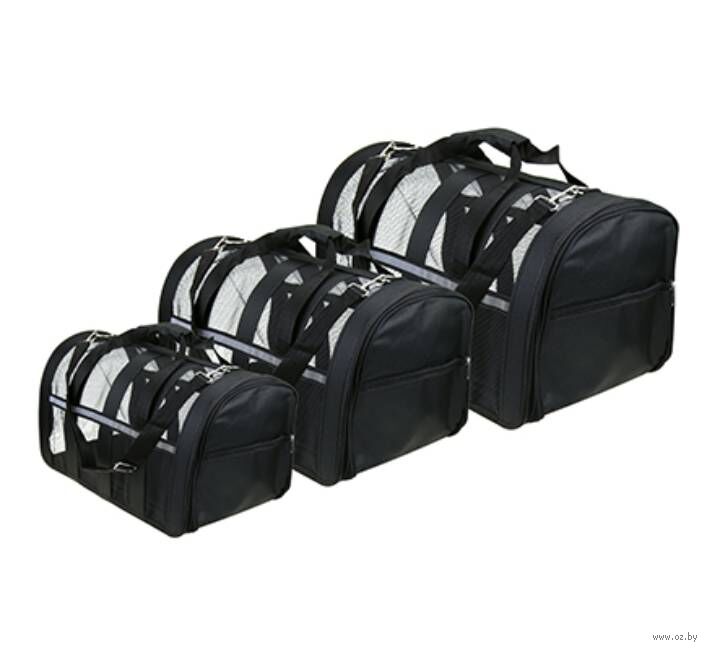 В набор входят три сумки разных размеров: 49х26х26 см, 41х25х24 см и 35х23х22 см, чтобы подойти для разных пород и размеров животных.