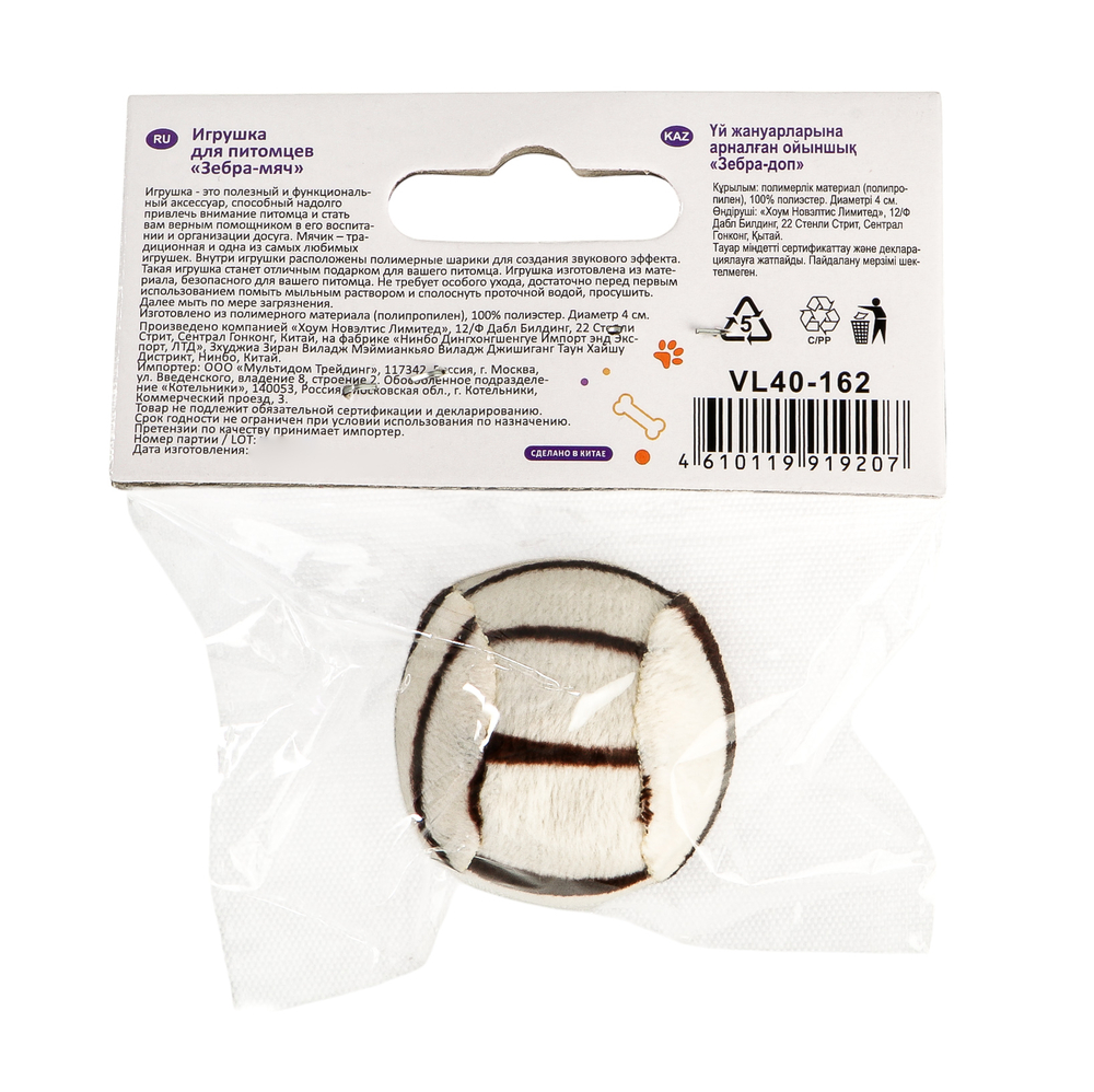 Игрушка – это полезный и функциональный аксессуар, способный надолго привлечь внимание питомца и стать вам верным помощником в его воспитании и организации досуга. Мячик – традиционная и одна из самых любимых игрушек. Внутри игрушки расположены полимерные шарики для создания звукового эффекта. Такая игрушка станет отличным подарком для вашего питомца. Игрушка изготовлена из материала, безопасного для вашего питомца. Не требует особого ухода, достаточно перед первым использованием помыть мыльным раствором и сполоснуть проточной водой, просушить. Далее мыть по мере загрязнения.