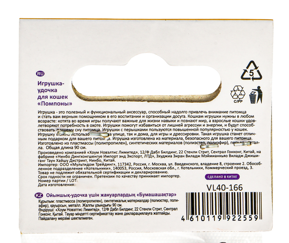 Игрушка – это полезный и функциональный аксессуар, способный надолго привлечь внимание питомца и стать вам верным помощником в его воспитании и организации досуга. Кошкам игрушки нужны в любом возрасте: котята во время игры получают важные для жизни навыки и познают мир, а взрослые кошки удовлетворяют потребность в охоте. Игрушки помогут избавиться от лишней агрессии и энергии, и будут способствовать лучшему сну питомца. Игрушки с перышками пользуются повышенной популярностью у кошек. Игрушку можно использовать как на улице, так и дома, для игры и дрессировки. Такая игрушка станет отличным подарком для вашего питомца. Игрушка изготовлена из материала, безопасного для вашего питомца.