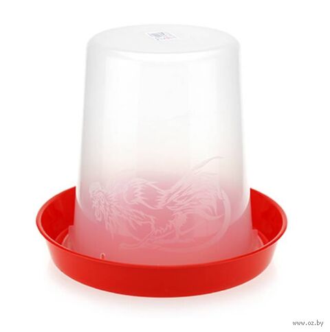 Вакуумная поилка пригодится для поения птицы. Состоит из бачка-конуса и крышки-дна.