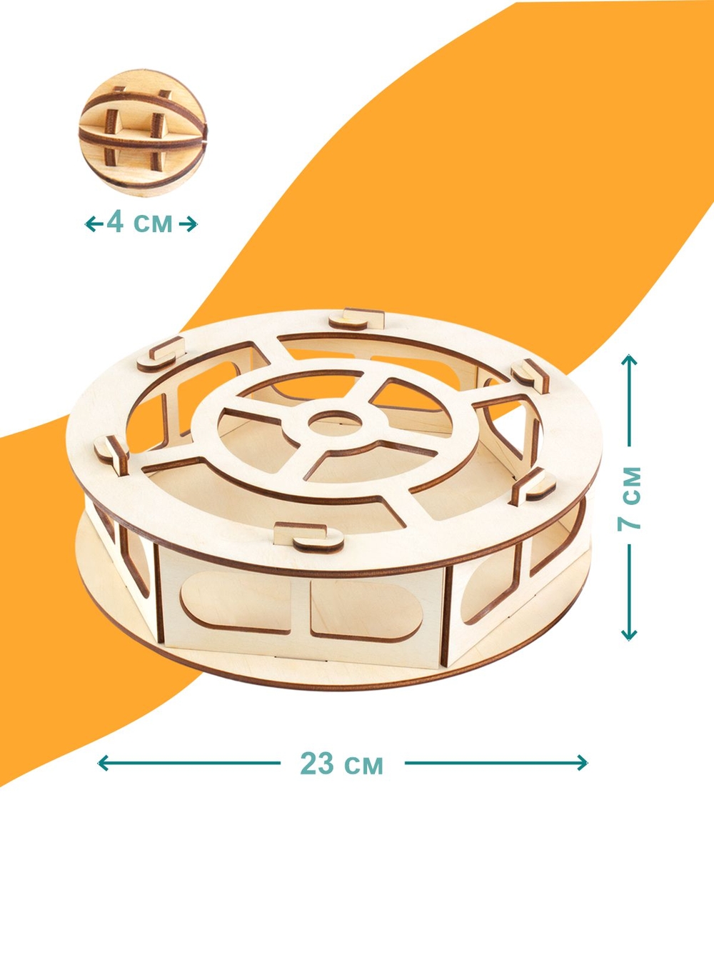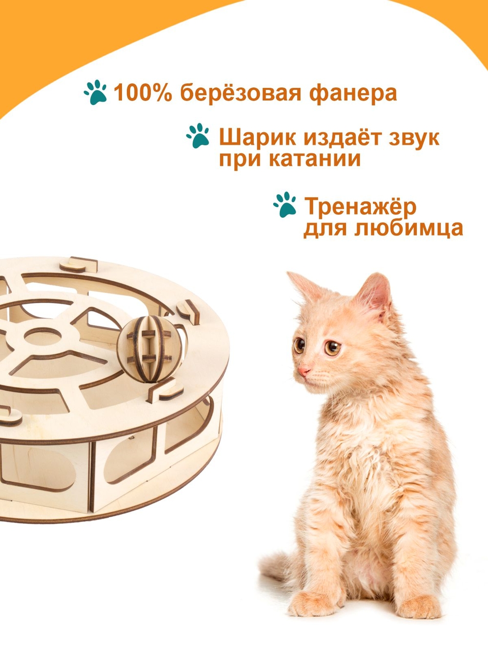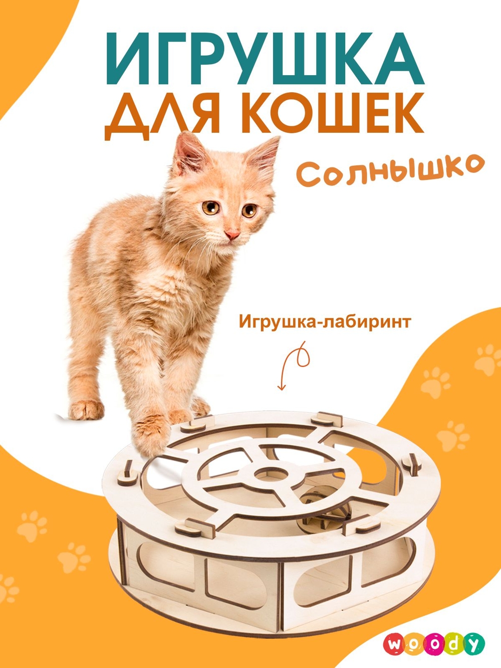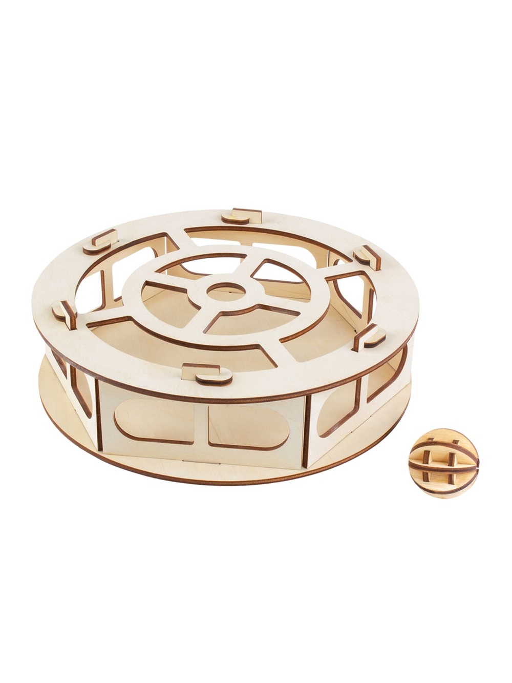 Игрушка "Солнце" – это игрушка лабиринт для кошек и грызунов с деревянным шариком-погремушкой. Экологичная игрушка для кошек и других животных сделана фанеры, имеет приятный запах.