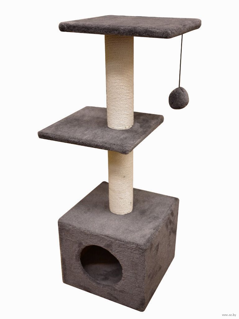 Столбик обмотан натуральным хлопком. Домик и полки покрыты мехом.