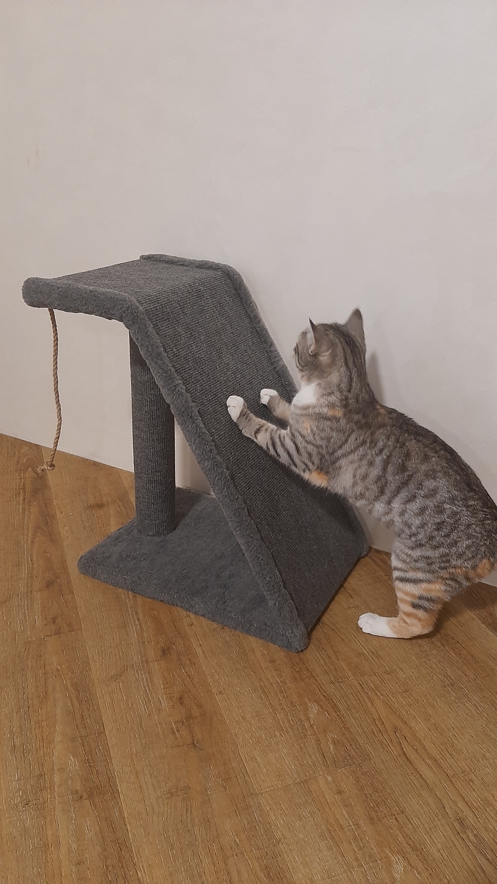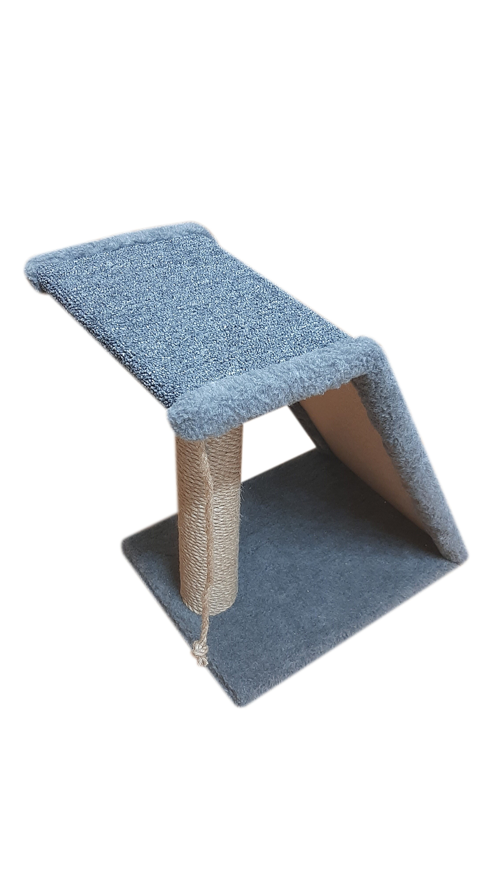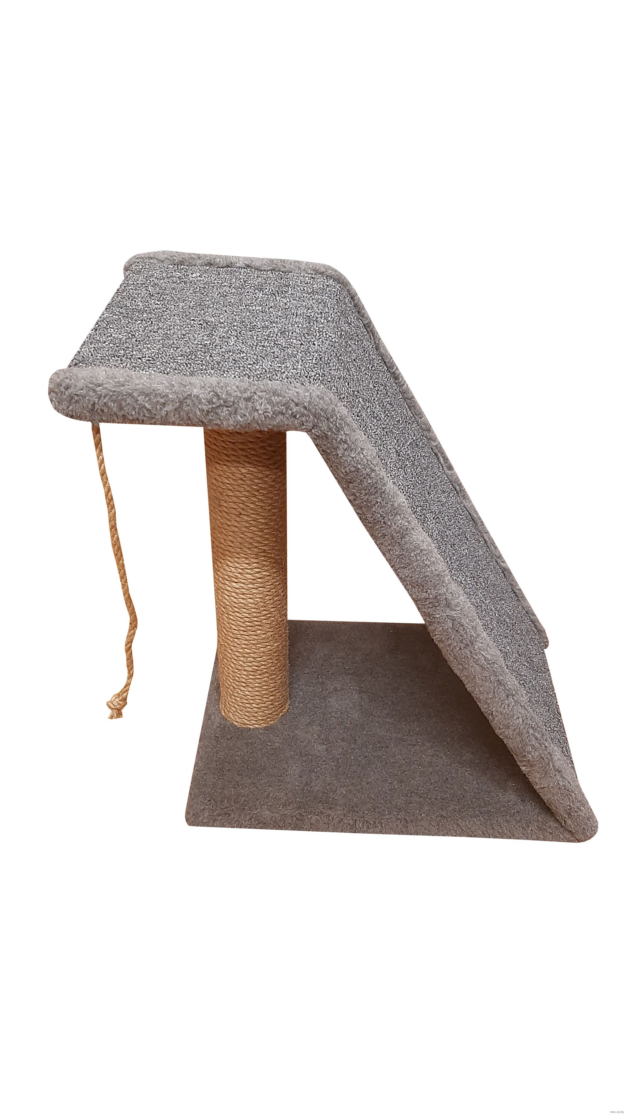 Комплекс обеспечит кошку местом для отдыха, благодаря удобной полке, а также позволит точить когти, используя столбик-когтеточку, выполненную из джута, либо наклонную поверхностью из ковролина.