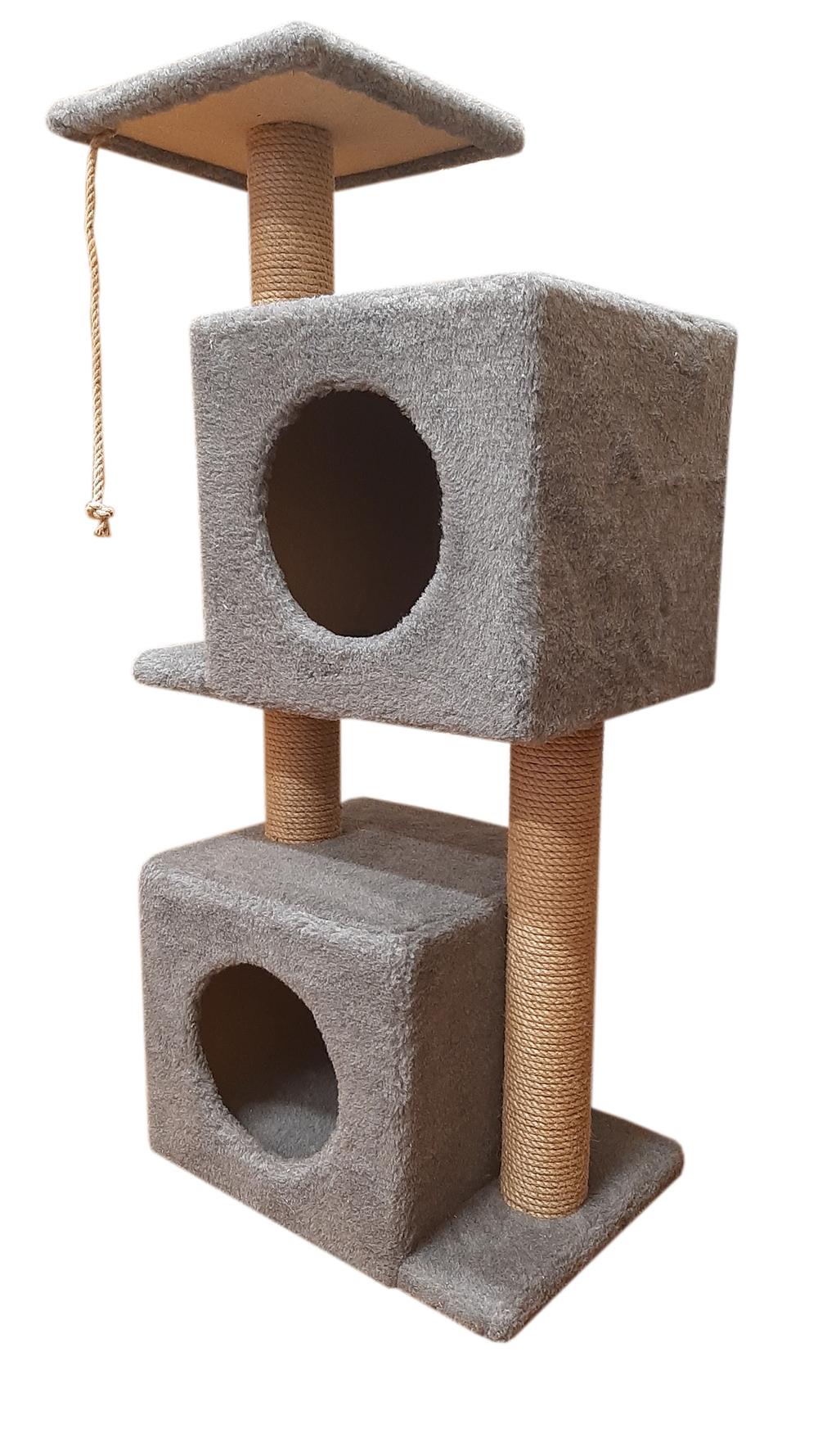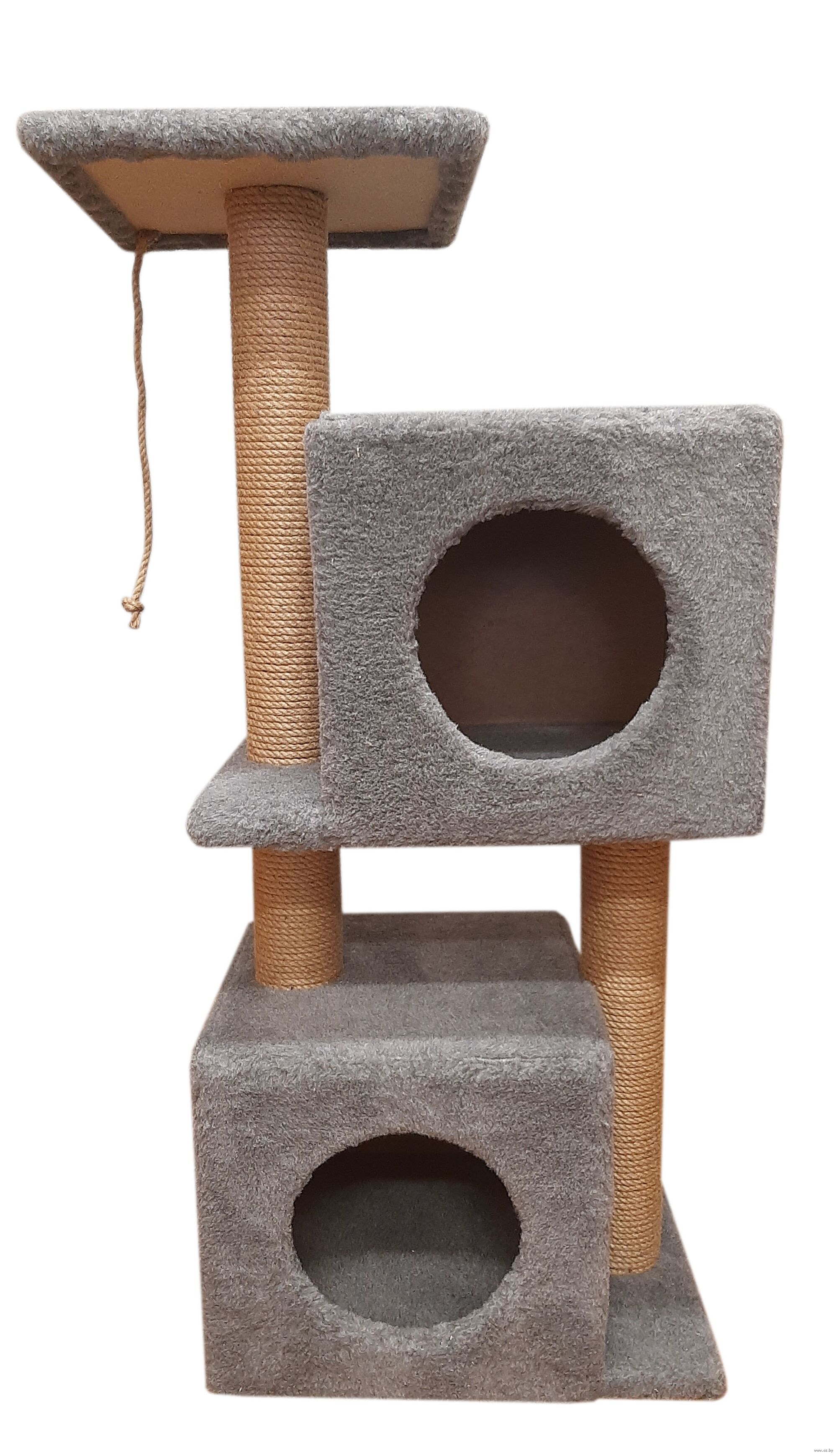 Игровой комплекс "Дуплекс" (джут) – большой, устойчивый и тяжелый игровой комплекс с радостью разместит на своих просторах одно или несколько питомцев.