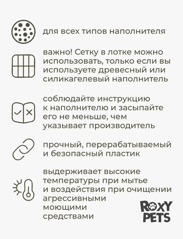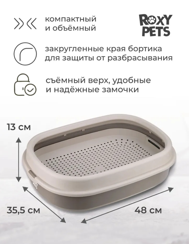 Особое внимание уделено безопасности и устойчивости – дно кошачьего лотка изделия имеет специальные противоскользящие элементы. Изготовленный из прочного пластика, лоток легко очищается и сохраняет первоначальный вид долгое время.