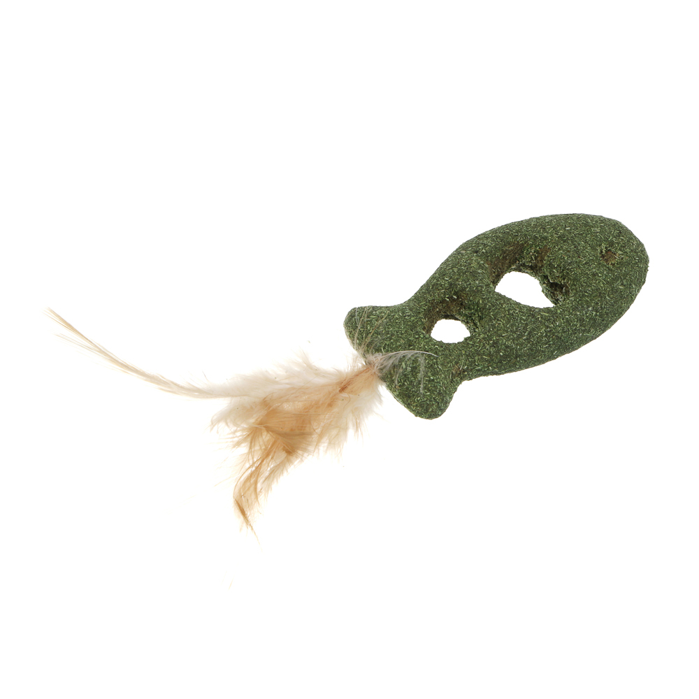Игрушка наполнена натуральной кошачьей мятой и оснащена перьевым элементом, что привлекает внимание кошки и стимулирует её охотничьи инстинкты. Длина 16,5 см делает её удобной для хватания, бросания и переноски, а форма грызака способствует развитию координации и моторики.