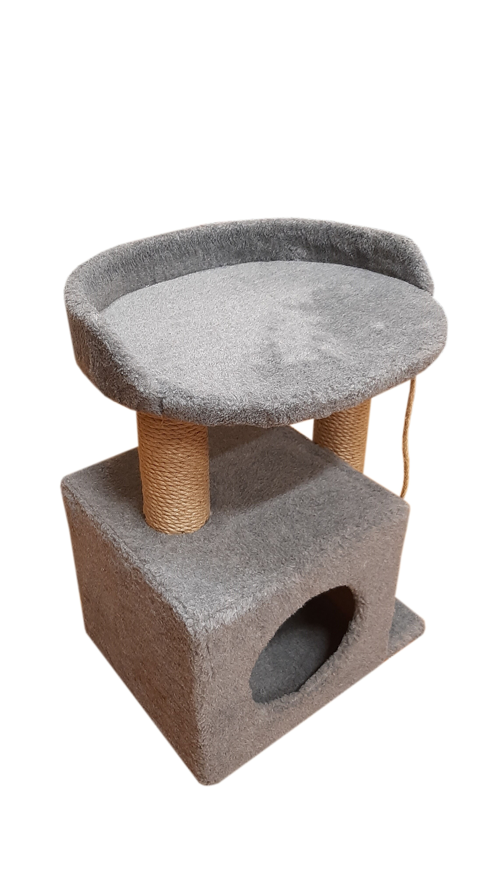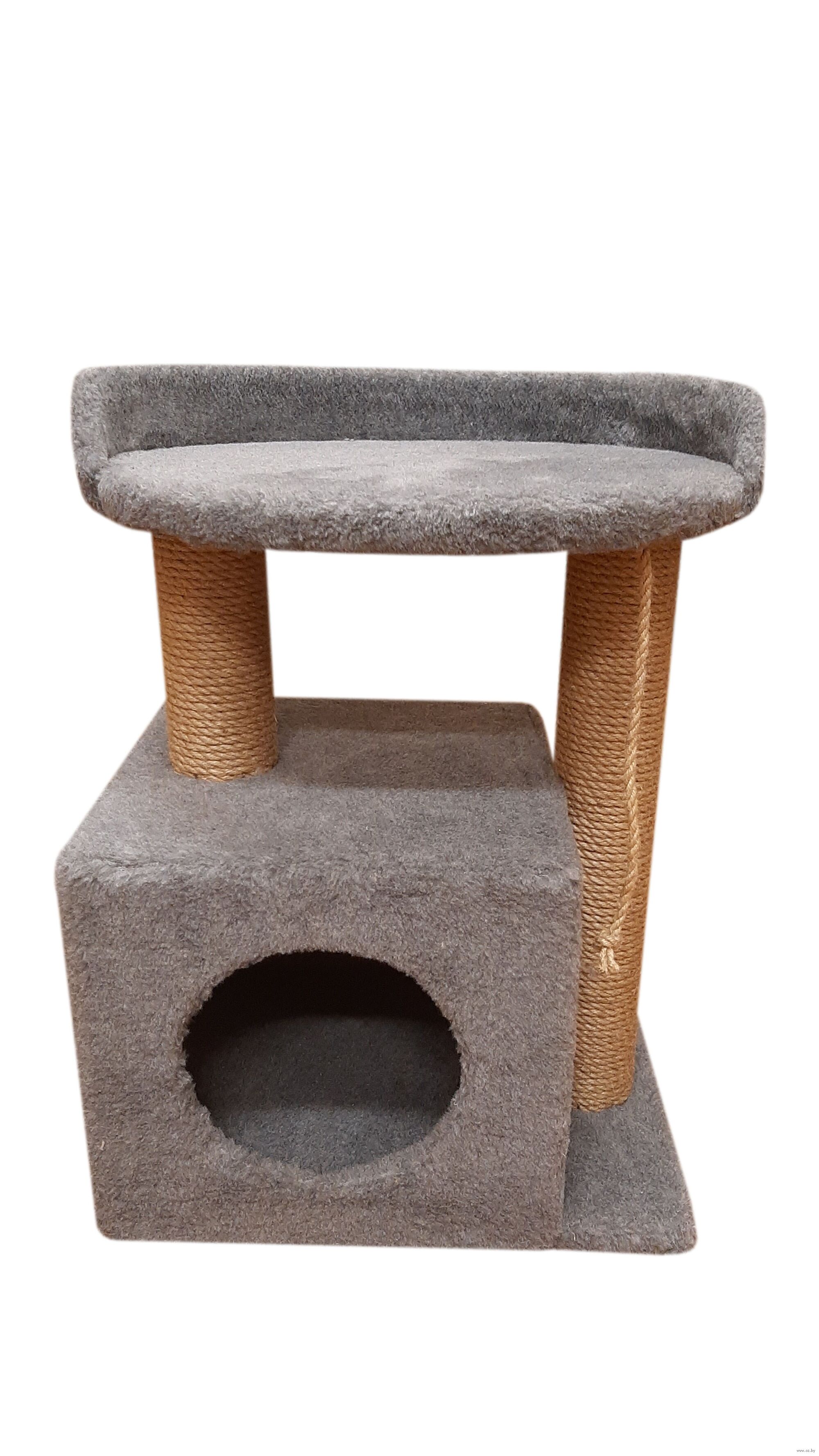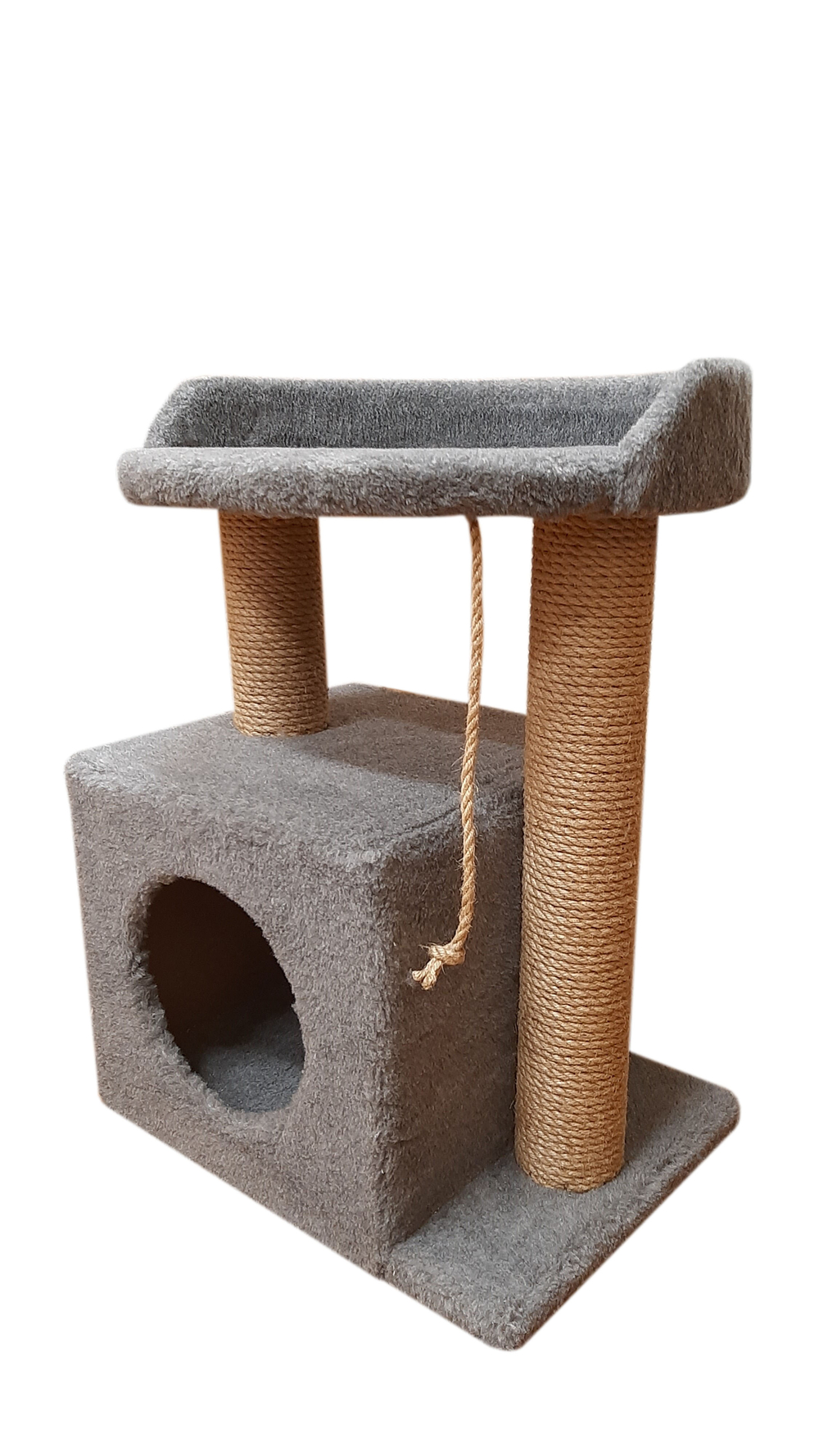 Столбик обмотан натуральным джутом. Домик и полка покрыты мехом.