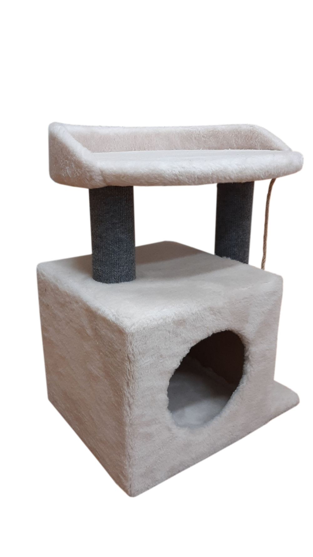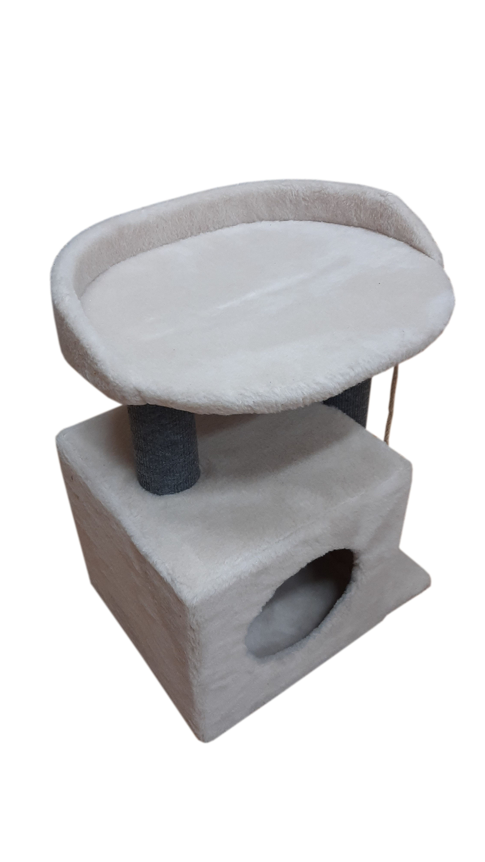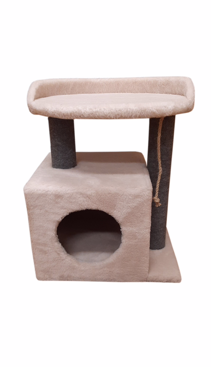 Домик с овальной полкой ковролин – удобный и практичный комплекс для кошек. Ваш питомец сможет поточить когти о когтеточку из ковролина. Уютный домик обит плюшем для комфорта питомца. На верхнем уровне закреплена полка-лежанка, где можно полежать.