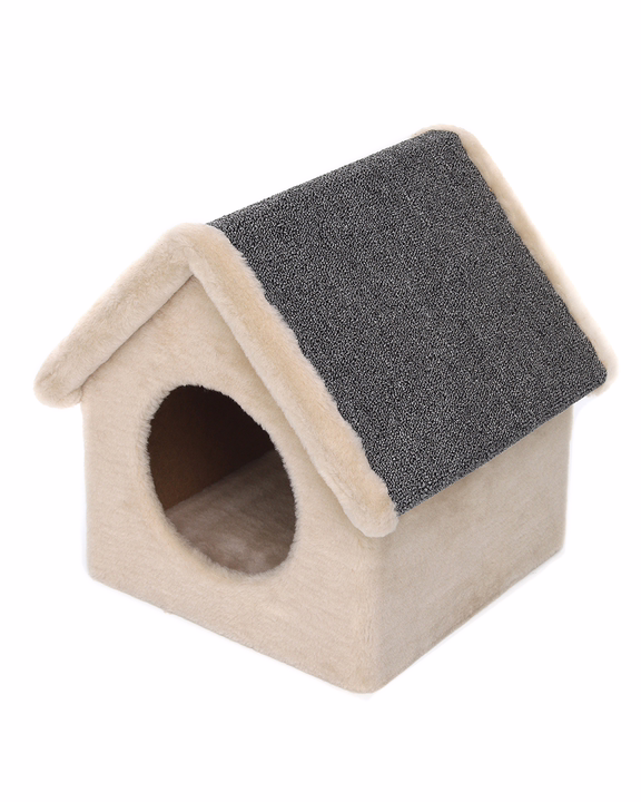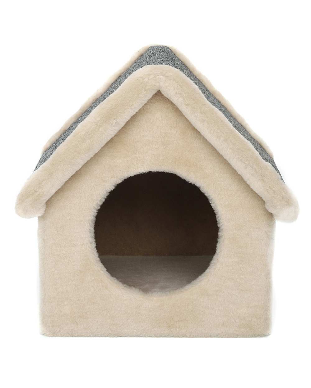 Домик с отделкой мехом. Крыша домика покрыта ковролином.