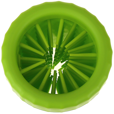 Мягкие щетинки бережно и эффективно удаляют загрязнения даже в труднодоступных местах между пальцами и подушечками лап, поэтому вся грязь остается внутри лапомойки, а не на полу вашего дома.