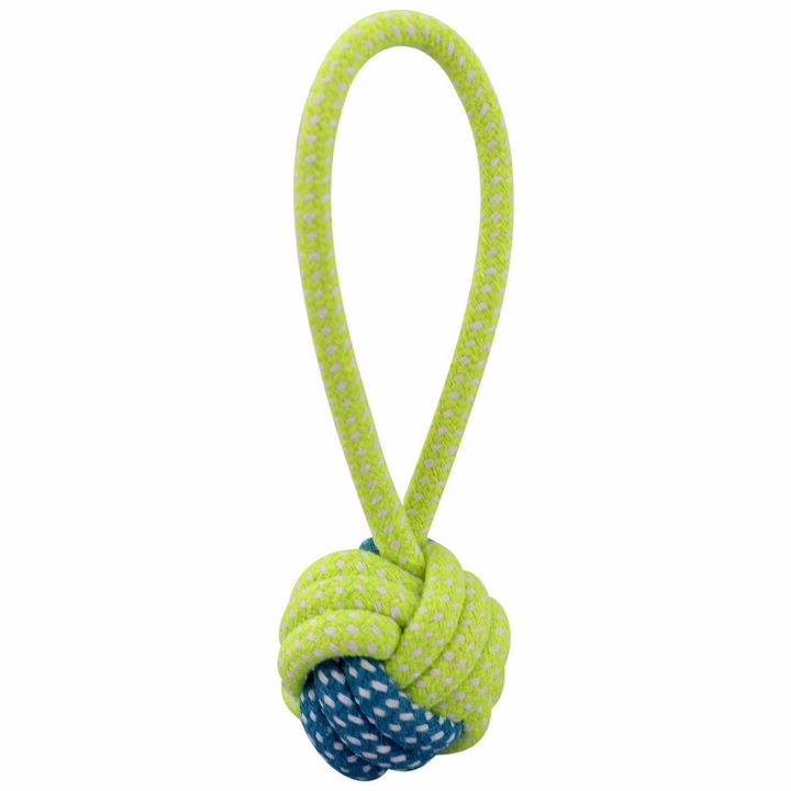 Игрушка – это полезный и функциональный аксессуар, способный надолго привлечь внимание питомца и стать вам верным помощником в его воспитании и организации досуга. Популярная игрушка для собак изготовлена из твёрдых, разноцветных канатов с гладкой поверхностью. Веревочная игрушка очищает зубы собаки от налета, поддерживает гигиену полости рта и массажирует десны. Игрушка имеет удобную форму для захвата зубами. Также игрушка развивает навыки взаимодействия с хозяином. Такая игрушка станет отличным подарком для вас и вашего питомца. Игрушка изготовлена из материала, безопасного для вашего питомца. Не требует особого ухода. По мере загрязнения рекомендуется постирать, согласно указаниям на этикетке.