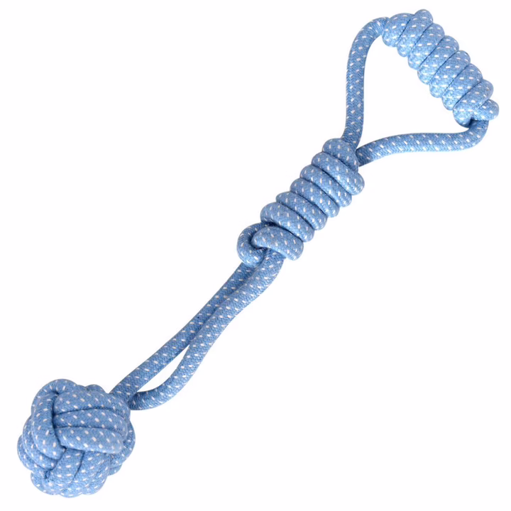 Игрушка – это полезный и функциональный аксессуар, способный надолго привлечь внимание питомца и стать вам верным помощником в его воспитании и организации досуга. Популярная игрушка для собак изготовлена из твёрдых, разноцветных канатов с гладкой поверхностью. Веревочная игрушка очищает зубы собаки от налета, поддерживает гигиену полости рта и массажирует десны. Игрушка имеет удобную форму для захвата зубами. Также игрушка развивает навыки взаимодействия с хозяином. Такая игрушка станет отличным подарком для вас и вашего питомца. Игрушка изготовлена из материала, безопасного для вашего питомца. Не требует особого ухода. По мере загрязнения рекомендуется постирать, согласно указаниям на этикетке.
