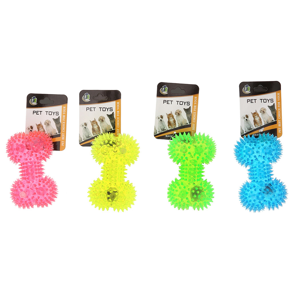 Игрушка для собаки "Косточка с шипами" с пищалкой, светящаяся.