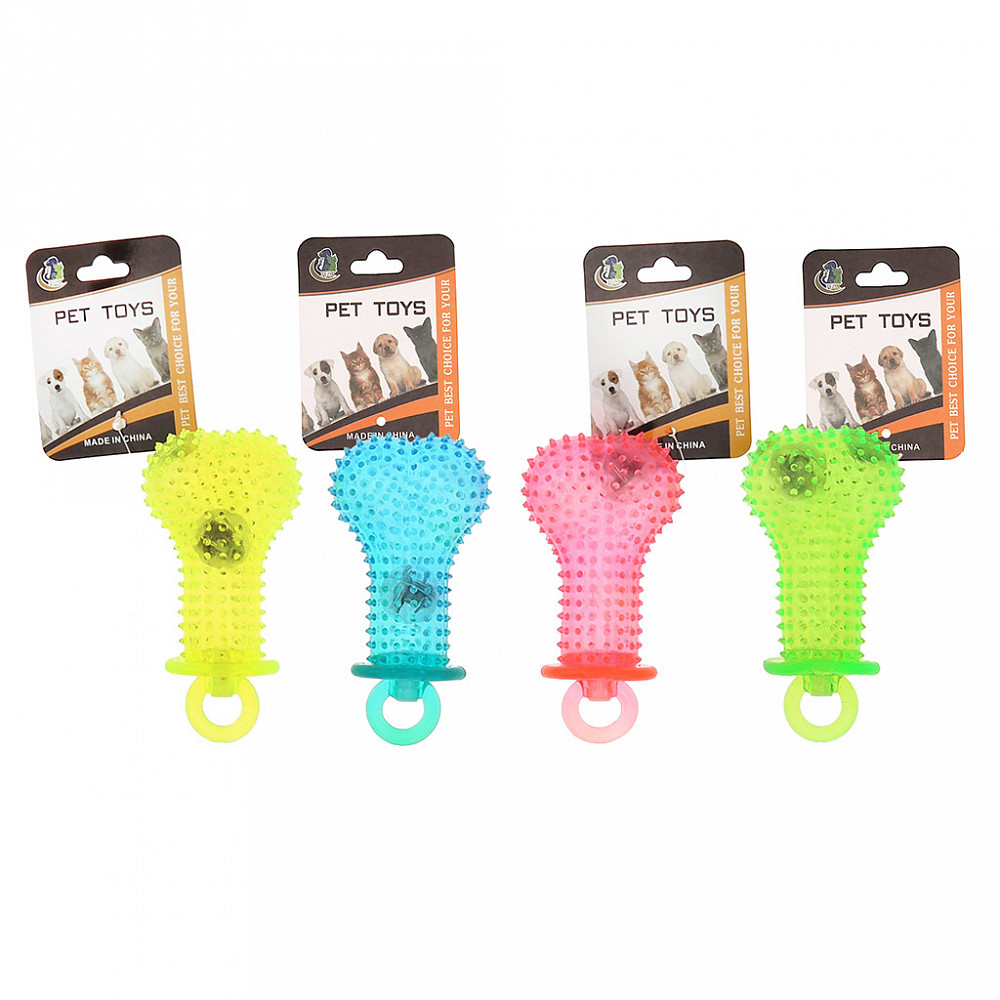 Игрушка для собак "Косточка массажная" размером 12x6 см и высотой 4,3 см выполнена из ПВХ, с пищалкой и светящаяся.