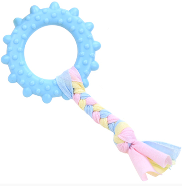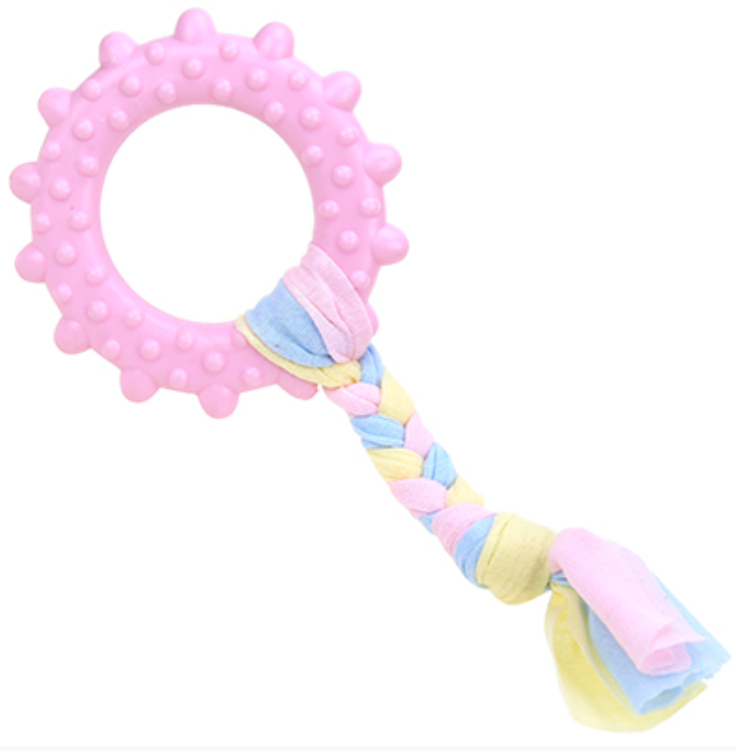 Игрушка для собак "Колечко с косичкой" – резиновая игрушка с диаметром 8 см и толщиной 1 см. Изготавливается в смешанных цветах.