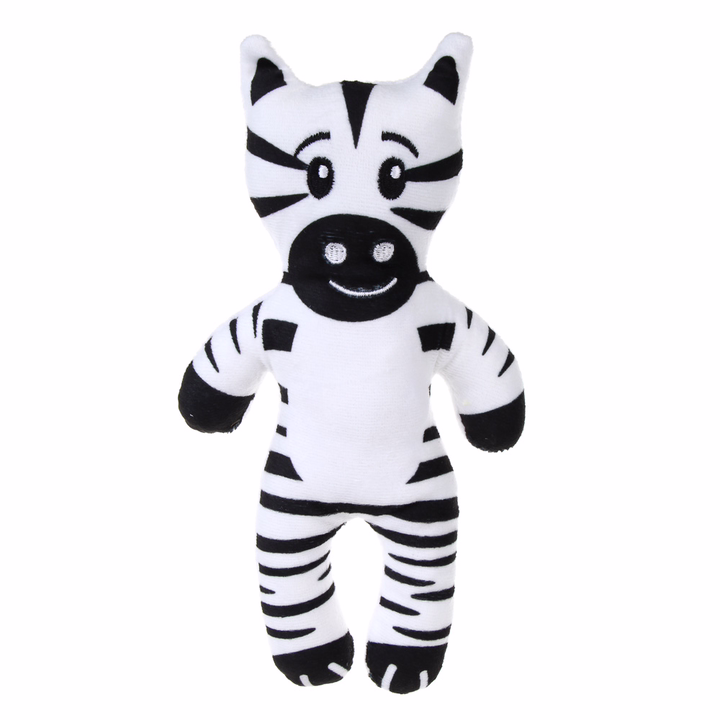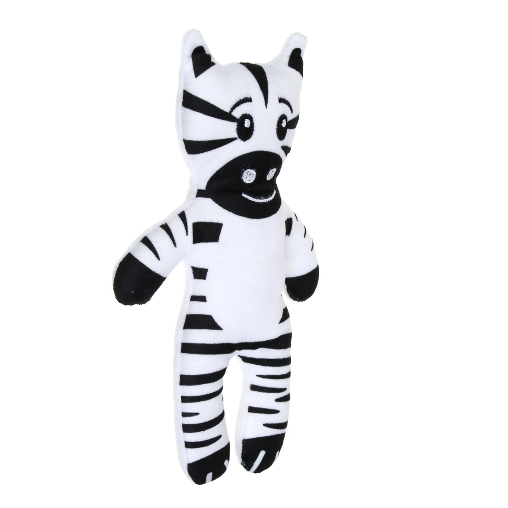 Игрушка для домашних животных изготовлена из полиэстера в виде зебры размером 14,5х24 см. Конструкция выполнена без использования клея, что делает её безопасной для питомца.