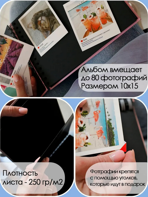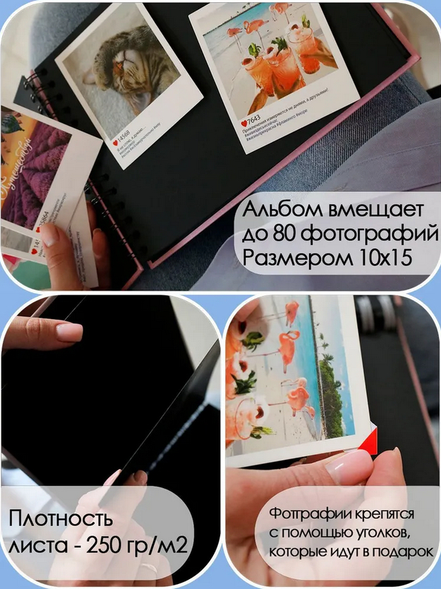 В комплекте 102 самоклеящихся уголков для фотографий.