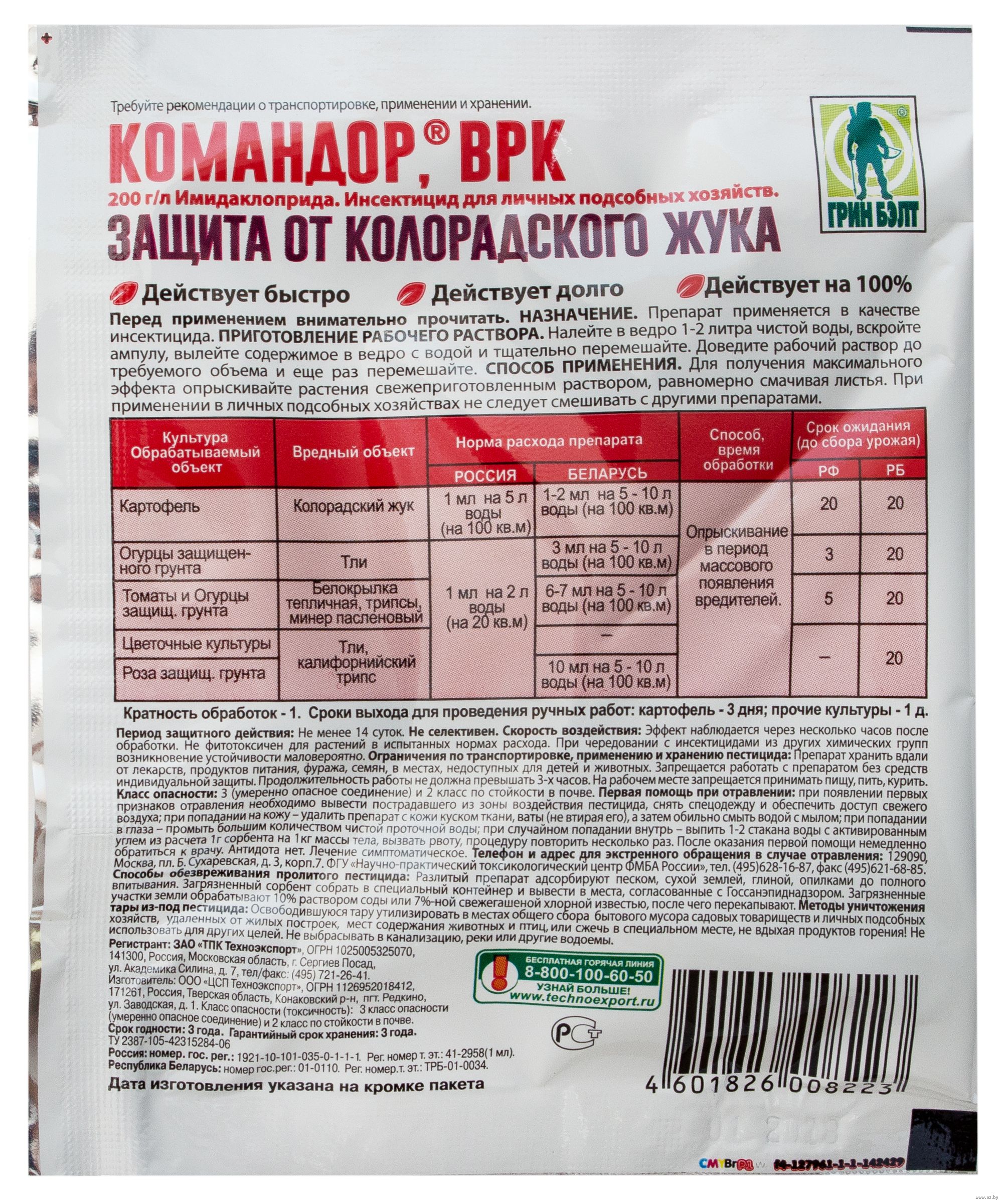 | Защита | Белокрылка, колорадский жук, тля |