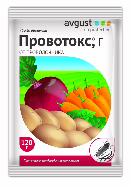 Проволочником называют желто-коричневую личинку жука-щелкуна, которая похожа на кусочек проволоки. Избавится от проволочника – непростая задача. Взрослый жук имеет жесткие прочные покровы, а личинка проволочника может перемещаться в почве на довольно больших глубинах, оставаясь недоступной для человека. Личинки повреждают не только картофель. Семена растений, корни, луковицы и клубни цветов – любимые лакомства вредителя. Несколько гранул "Провотокс" в лунку при посадке картофеля – и проволочника вы не увидите с весны до осени!