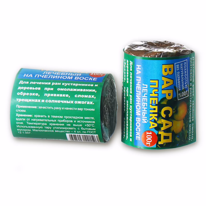 100% натуральный садовый вар. В его основе – пчелиный воск, хвойная смола, пихтовое и растительное масло, а также защитные фитобактерии Фитоспорина.