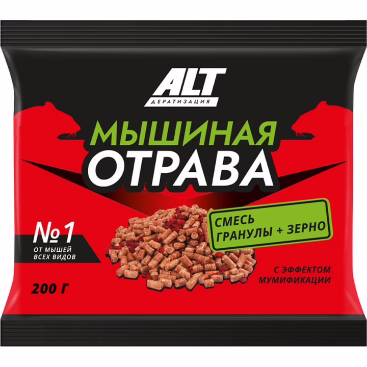 Готовое к применению родентицидное средство в виде смеси зерна и пеллет (гранул на зерновой основе) для борьбы с домовыми мышами, песчанками, рыжими полевками и сусликами (малый горный, длиннохвостый) внутри и вокруг жилых помещений, хозяйственных построек и на приусадебном участке. Средство пригодно для использования в сухих и влажных помещениях, канализационной сети, подвалах, погребах и подземных сооружениях.