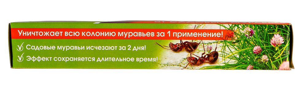 Средство обладает острой инсектицидной активностью для тараканов и муравьев (рыжих, домовых, черных садовых и др.), их полная гибель наступает через 1-2 суток.