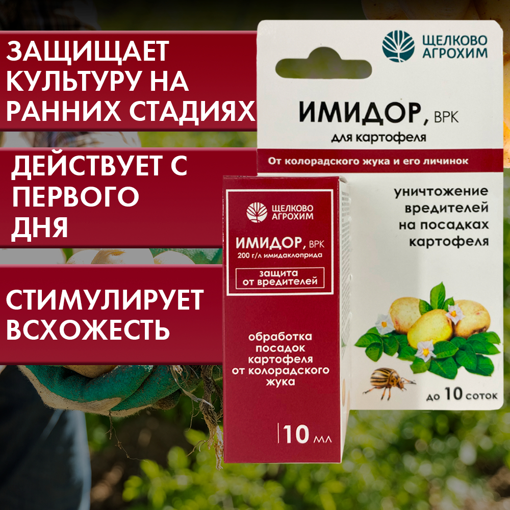 Препарат системного действия против колорадского жука и его личинок разных возрастов на картофеле.