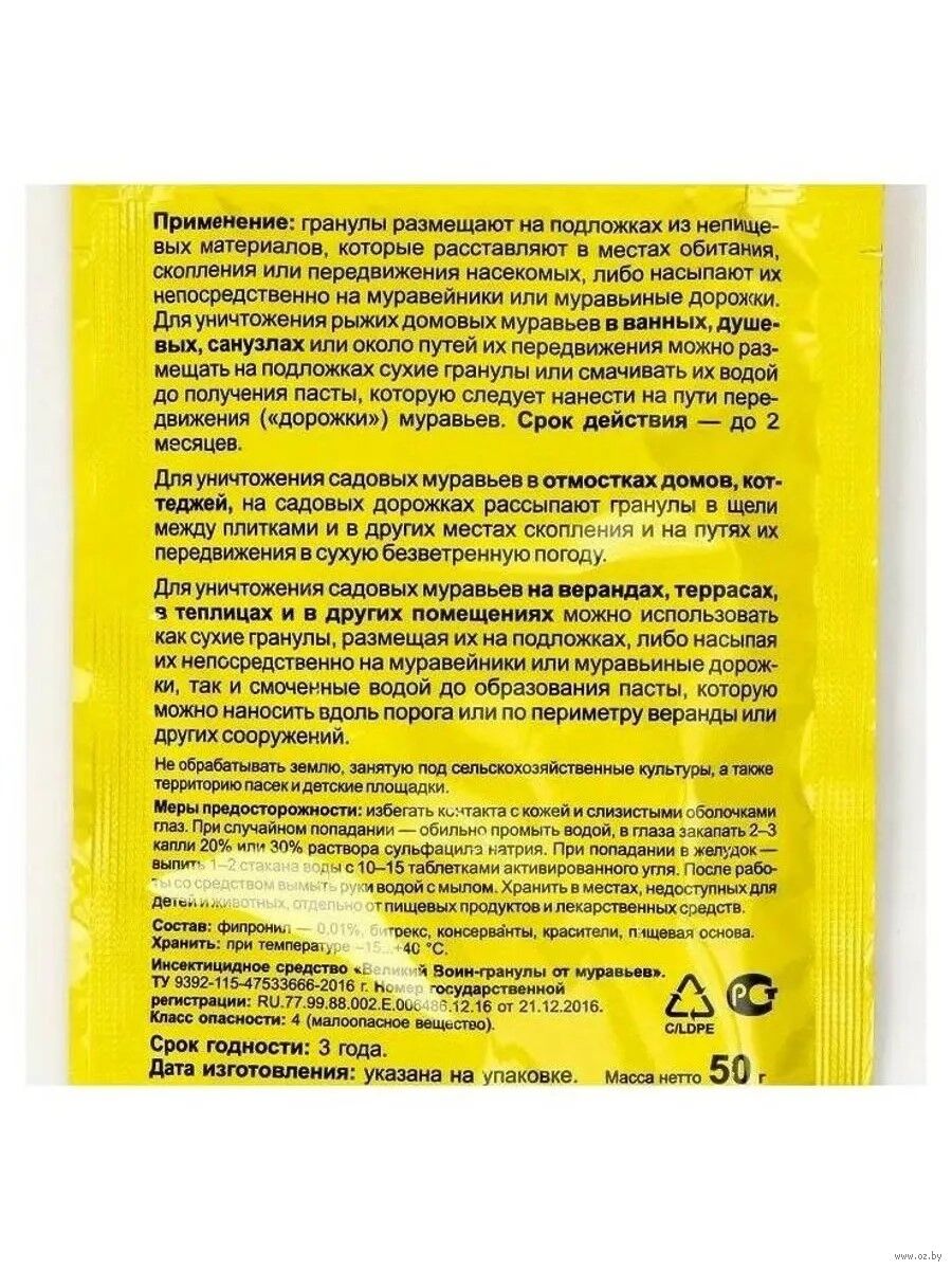 Гранулы для уничтожения садовых и домовых муравьёв 50 г – это эффективное инсектицидное средство, которое поможет вам избавиться от садовых и домовых муравьев в различных помещениях.