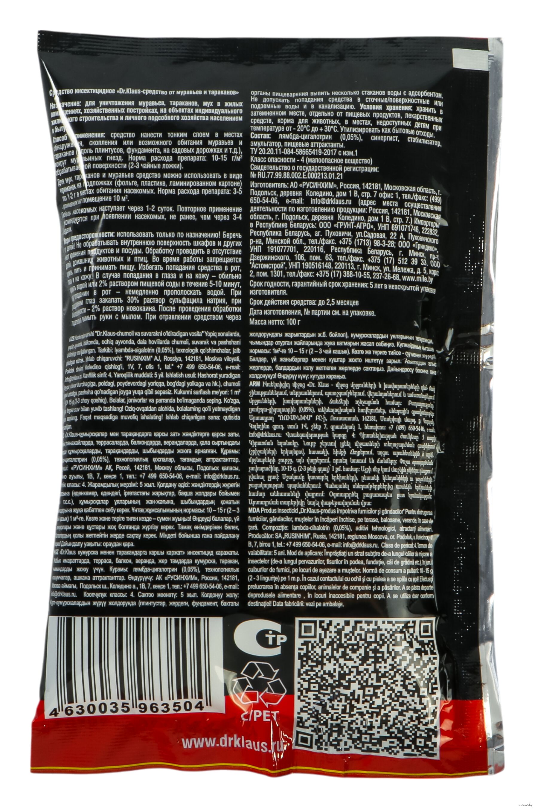 | Изготовитель | АО "Русинхим", 142181, Московская область, г. Подольск, д. Коледино, дом1В, строение 7, офис 1 |