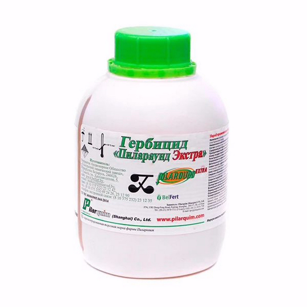 Высокоэффективный гербицид слошного действия нового поколения Пилараунд "Экстра" предназначен для опрыскивания вегетирующих сорняков в период их активного роста – однолетних и многолетних злаковых и двудольных, бодяка полевого и вьюнка полевого. Механизм действия – нарушение синтеза ароматических аминокислот и влияние на проницаемость клеточных мембран, что в конечном итоге ведет к разрушению клеточных структур.
