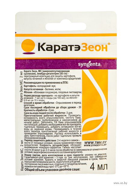 Пиретроидный инсектицид для защиты сельскохозяйственных культур и дезинсекции зернохранилищ. Преимущества: широкий спектр действия (высокоэффективен против широкого спектра вредителей на всех жизненных стадиях, от личинки до имаго). Улучшенная формуляция (микрокапсулированная суспензия; защита от УФ-лучей; высокая точка возгорания; отсутствие запаха; единственная на рынке быстровысвобождающаяся микрокапсулированная препаративная форма).