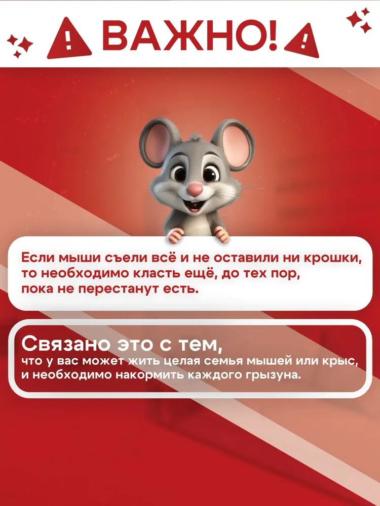 Приманка в форме тесто-брикета создана специально для борьбы с крысами, так как в своем обычном питании крысы, в отличие от мышей, предпочитают не столько зерно, сколько разнообразный корм растительного и даже животного происхождения.