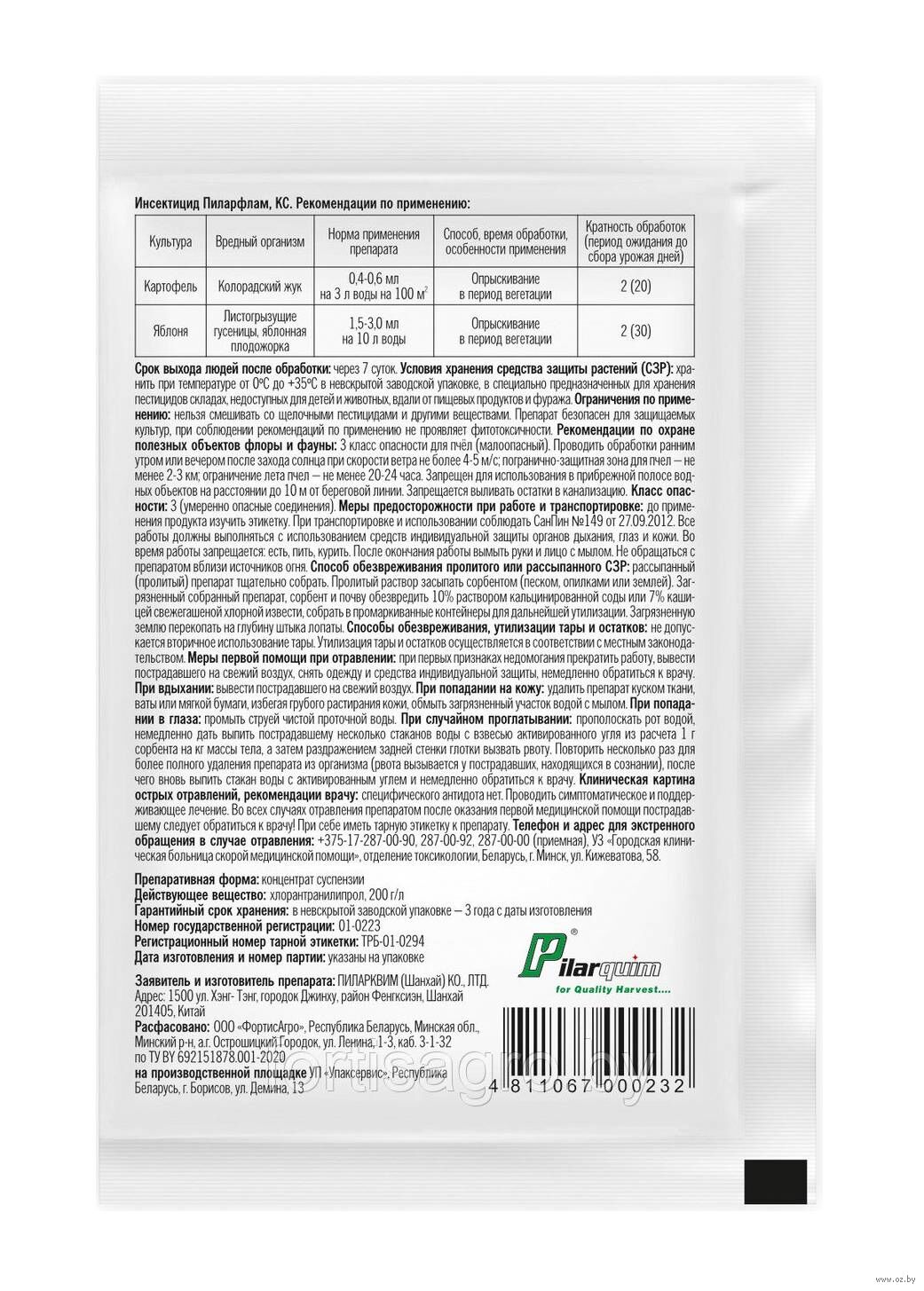 Благодаря быстрому трансламинарному действию Пиларфлам обладает высокой стойкостью к смыванию осадками. Кроме высокой биологической активности, Пиларфарм имеет длительный период защитного действия (до трех недель).