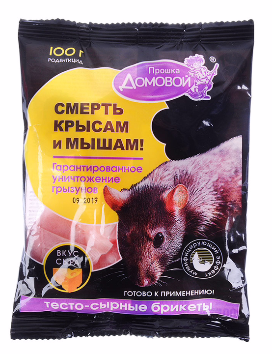 Тесто-сырные брикеты предназначены для истребления серых и черных крыс и домовых мышей.