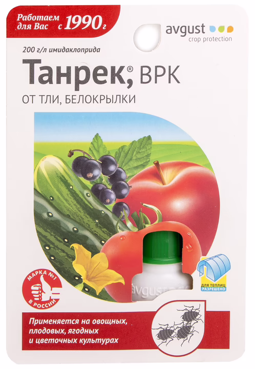Танрек – это средство от тли с длительным периодом защитного действия, рассчитанным на уничтожение тли на овощных, плодовых, ягодных и цветочно-декоративных культурах.