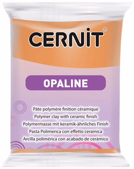 Cernit Opaline – запекаемая полимерная глина для изготовления бижутерии, декора, кукол, миниатюр. Из-за пониженного содержания пигментов имеет полупрозрачный (фарфоровый) эффект. Легко смешивается между собой, послушная в работе. Текстура пластики плотная, но после разминания быстро становится однородной, пластичной, податливой, хорошо держит форму, не прилипает к рукам и инструментам.