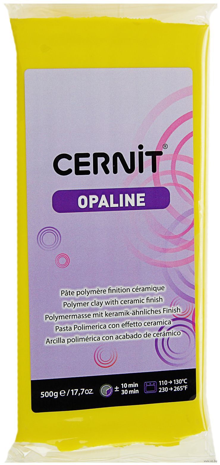 Cernit Opaline – запекаемая полимерная глина для изготовления бижутерии, декора, кукол, миниатюр. Из-за пониженного содержания пигментов имеет полупрозрачный (фарфоровый) эффект. Легко смешивается между собой, послушная в работе. Текстура пластики плотная, но после разминания быстро становится однородной, пластичной, податливой, хорошо держит форму, не прилипает к рукам и инструментам.