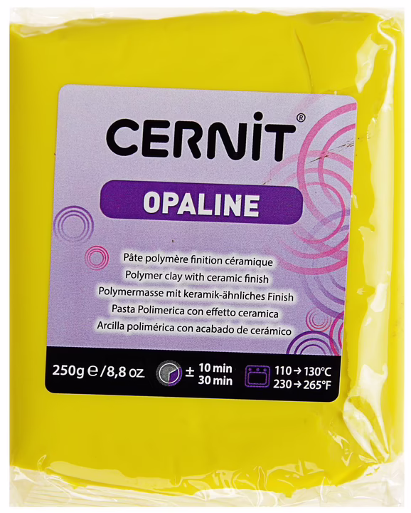 Cernit Opaline – запекаемая полимерная глина для изготовления бижутерии, декора, кукол, миниатюр. Из-за пониженного содержания пигментов имеет полупрозрачный (фарфоровый) эффект. Легко смешивается между собой, послушная в работе. Текстура пластики плотная, но после разминания быстро становится однородной, пластичной, податливой, хорошо держит форму, не прилипает к рукам и инструментам.