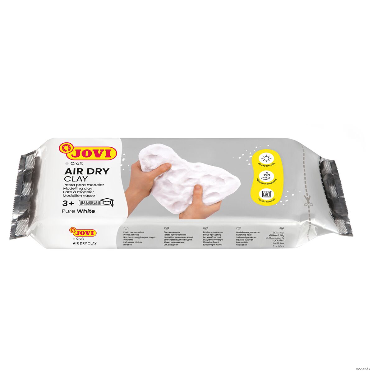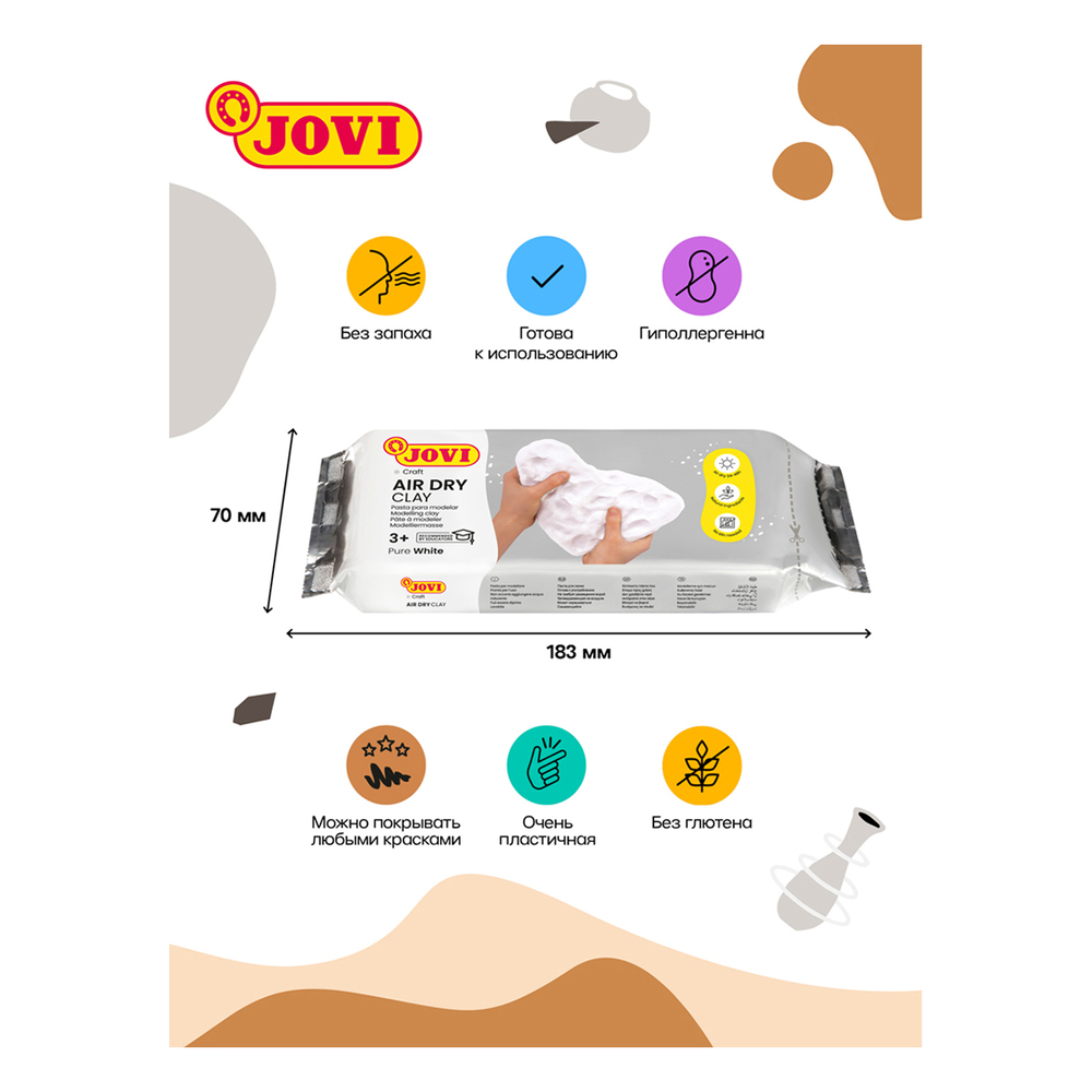 Отлично подойдет для лепки дома, в школе, художественных студиях и для профессионального использования. Основной состав: вода, карбонат кальция, целлюлоза, каолин.