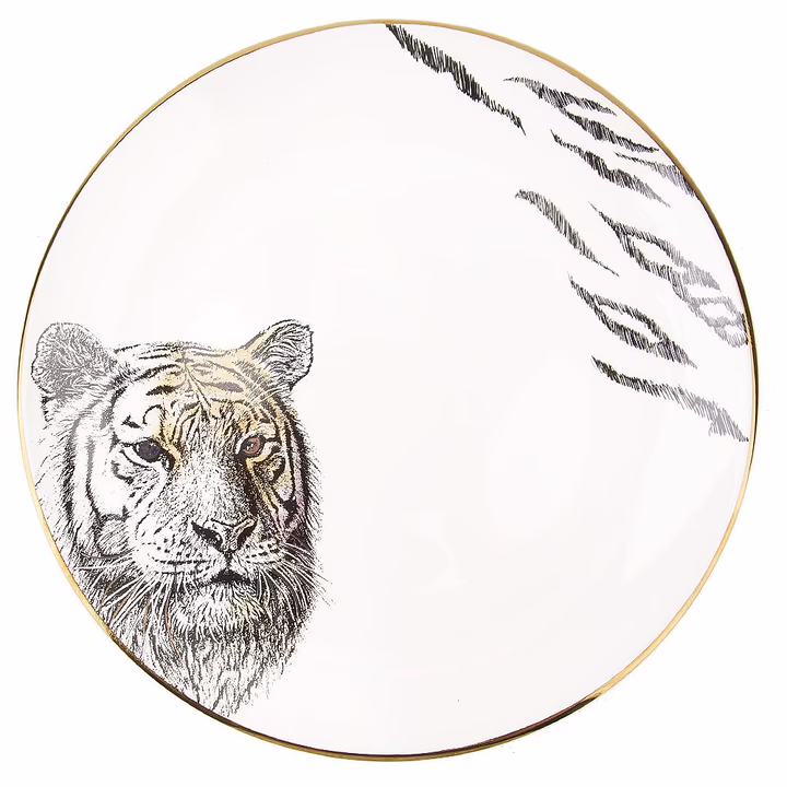 Уникальное оформление посуды выполнено методом деколи, а основные золотые части выполнены при помощи электроплейтинга. Часть декоративных элементов прорисованы вручную из натурального 24 каратного золота – бивни у слона, глаза тигра. В коллекции "Саванна" представлен широкий спектр наименований, что позволит без труда собрать набор, подходящий именно вам.