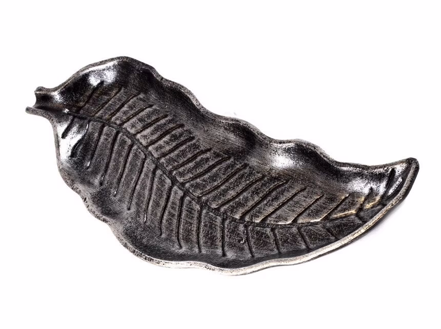 Блюдо деревянное "Винтажный лист" (280х100х15 мм; серое)