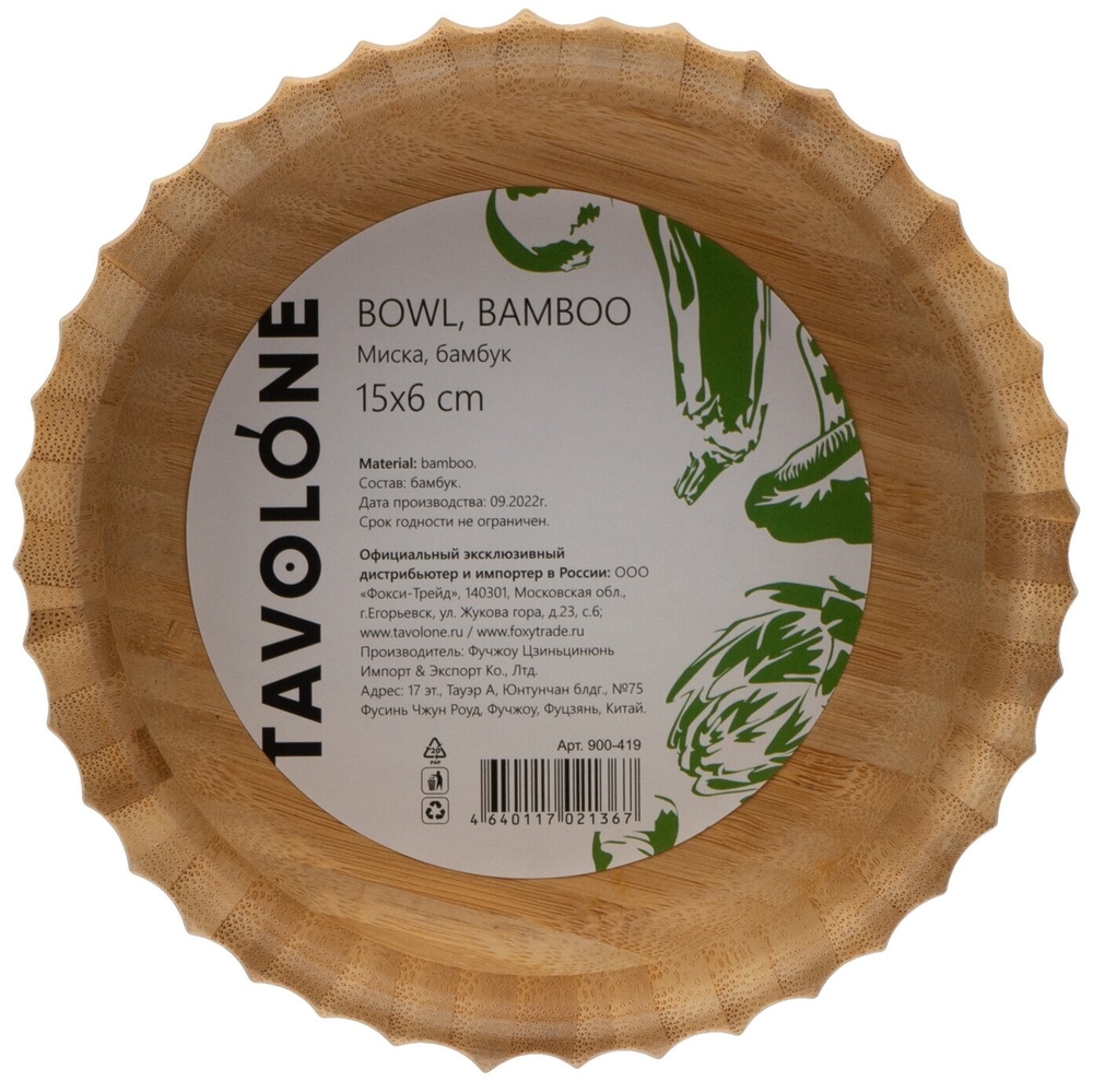 Миска выполнена из 100% бамбука, что не позволяет пище терять своих вкусовых свойств и аромата. Его элегантная форма придаст особый шарм вашему столу и создаст уютную атмосферу.