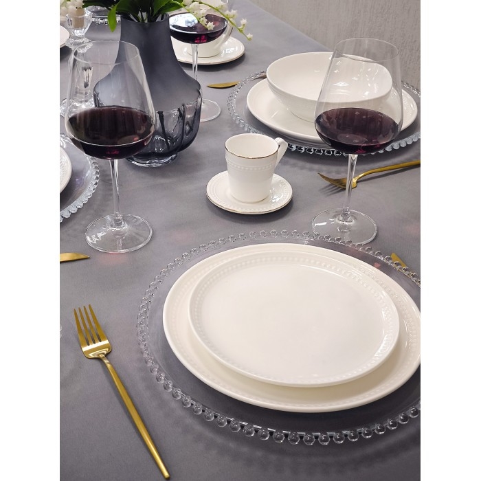 Особенностью коллекции "Prime" является рельеф в виде капель, который придает посуде изысканный и оригинальный вид. Этот дизайн делает каждую тарелку, чашку или другой предмет по-настоящему уникальным и привлекательным. Один из особых элементов украшения коллекции "Prime" – декор из 24 каратного золота. Золотистые детали идеально дополняют белоснежный фарфор, придавая посуде роскошный и изысканный вид. Этот дополнительный шик делает каждое изделие особенным и подчеркивает ваш вкус и статус.