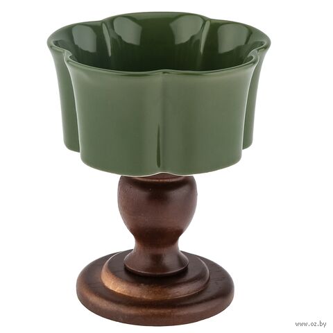Креманка фарфоровая на деревянной ножке.