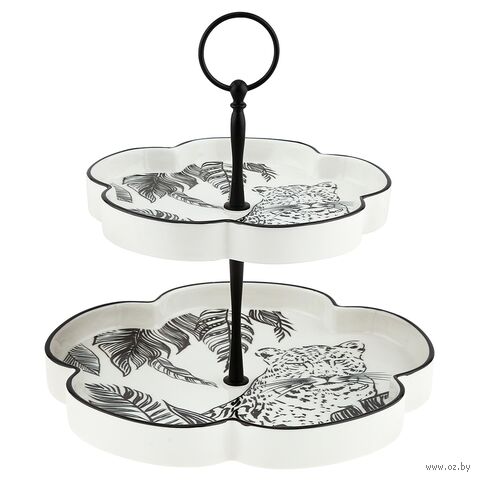 Блюдо-этажерка используется для красивой выкладки фруктов, ягод и сладостей. Изделие выполнено из фарфора, который обладает механической прочностью, не деформируется и не трескается, сохраняет свой вид и цвет длительное время. Благодаря оригинальному дизайну блюдо украсит любой стол.