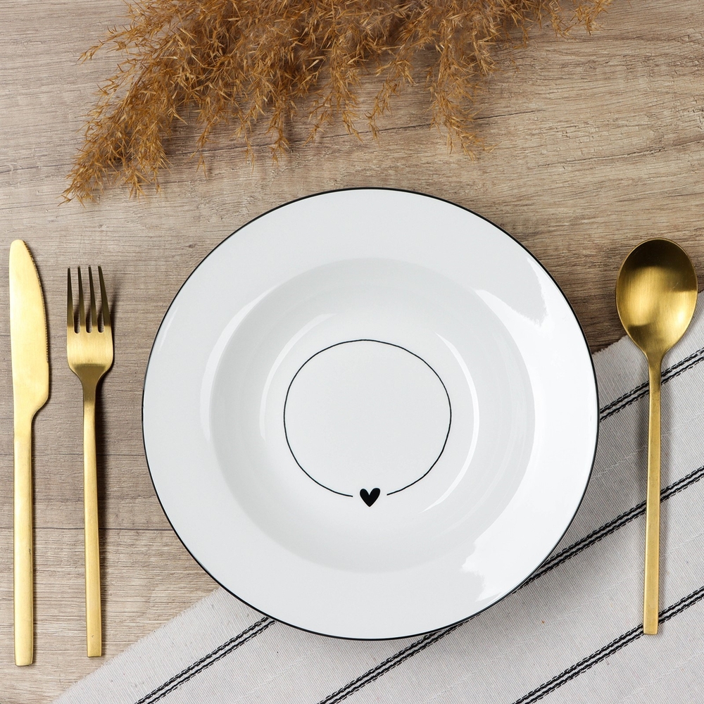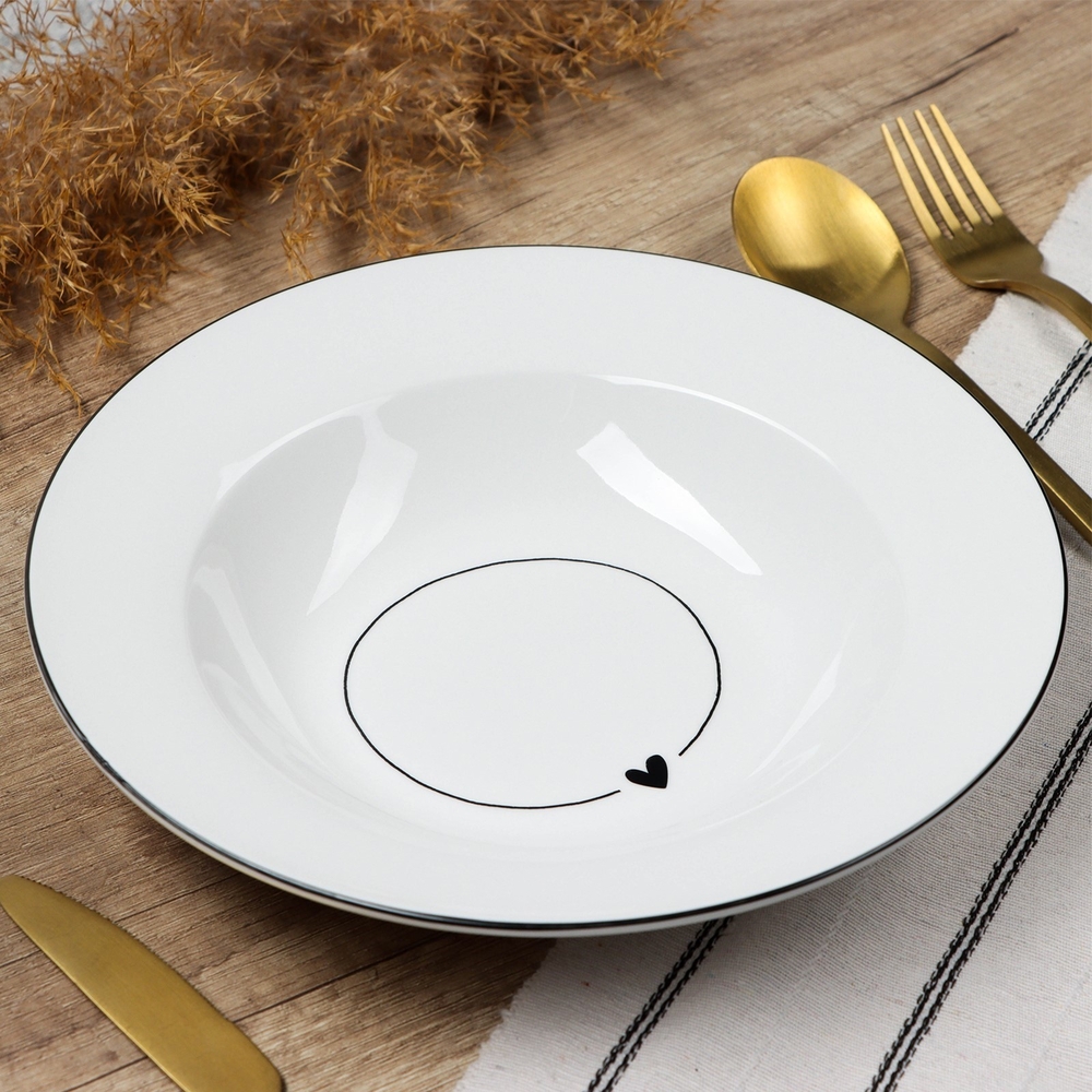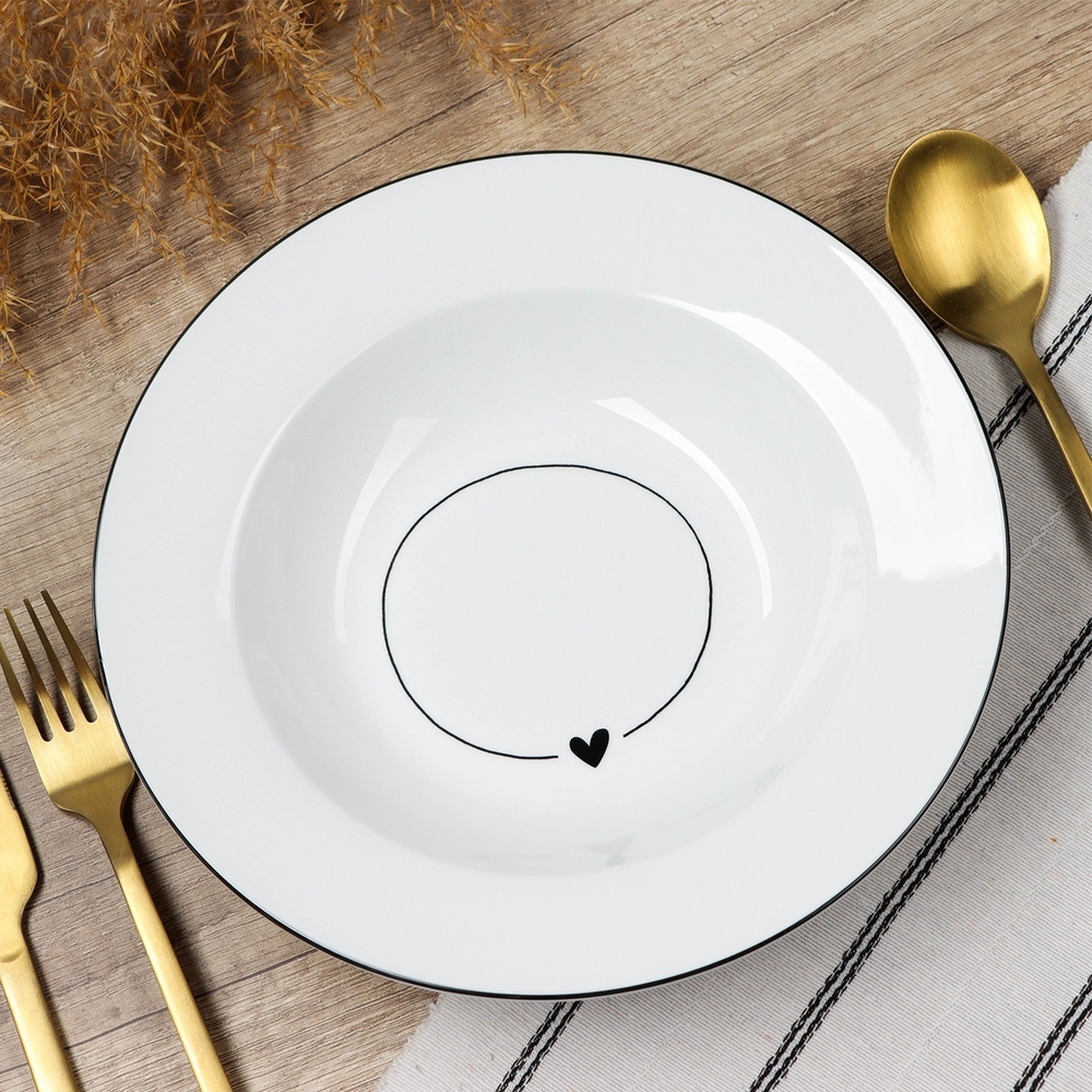 | Особенности | Глубокая, можно использовать в свч-печи, можно мыть в посудомоечной машине, ручная работа |