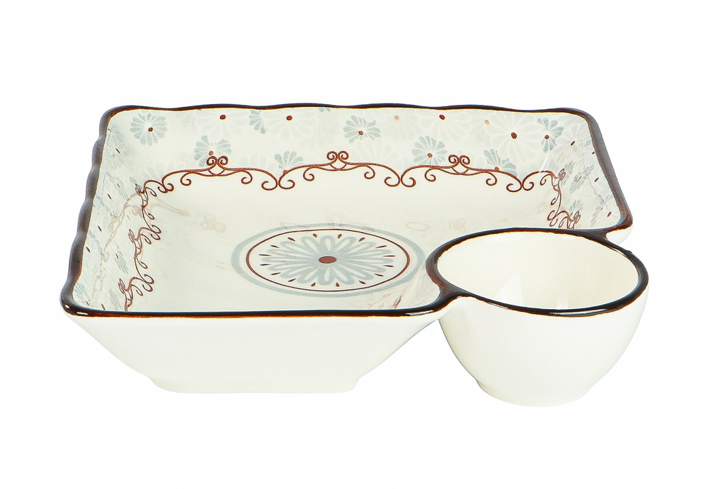 Блюдо фарфоровое с соусником "Классика" (175х165х36 мм)