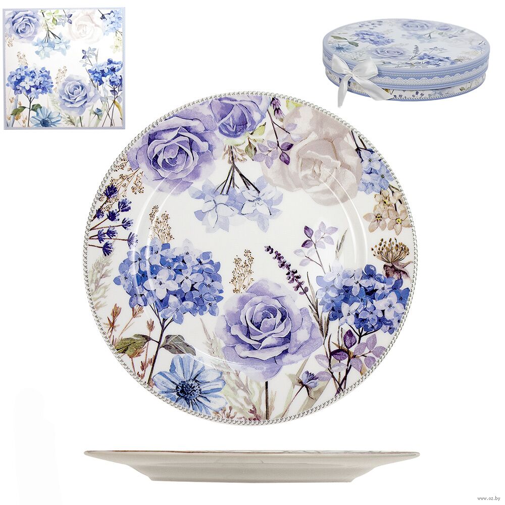 Набор из двух декоративных тарелок, украшенных изысканным изображением прекрасных синих цветов.